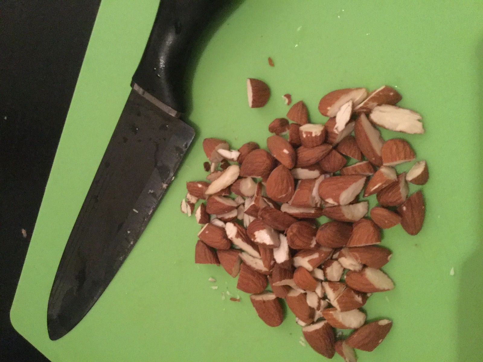 Concasser très grossièrement une poignée d'amandes a l'aide d'un bon couteau.